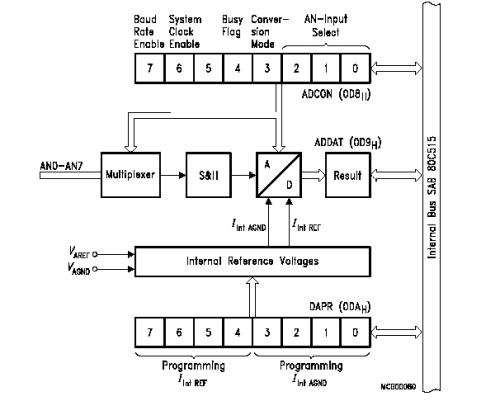 Manche Datenblätter müsste man eher als Datenbücher bezeichnen. Zu Mikrocontrollern können mehr als 300 volle Seiten an Informationen anfallen. Ein Schwerpunkt der kleinen Datenblattsammlung auf der CD bilden Mikrocontroller aus der 8051-Familie wie z.B. 80C32, 80C535, 80C537 und AT89C2051. Die Hersteller dokumentieren jede Einzelheit, die im täglichen Umgang mit den Prozessoren von Bedeutung ist. Das Bild zeigt die Struktur des internen AD-Wandlers im 80C535. Man findet alle Registeradressen und die genaue Beschreibung aller Steuerbits. Wenn ein Programm mal nicht so funktioniert wie gewünscht, dann hilft oft nur der Blick ins Datenbuch.