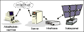 Im Rahmen eines Seminars über den Einsatz von neuen Medien im Physik- und Technikunterricht ergaben sich für uns folgende Intentionen. Aufbauend auf der im Artikel “PDV über´s Netz” von den Herren Pötter und Bresges beschriebenen Infrastruktur war unsere Zielsetzung die Entwicklung einer Software zur Ansteuerung und automatischen Ausrichtung der beschriebenen Solaranlage in Richtung einer Lichtquelle. Ferner sollte das Projekt auf Tauglichkeit zum Einsatz in der Schule geprüft werden. Hier werden kurz die in der zur Verfügung stehenden Zeit zustande gekommenen Ergebnisse und aufgetretenen Probleme dargestellt.