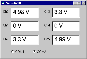 Die Dokumentation zum SERAI 6-10 enthält ein Programmbeispiel für Visual Basic 3. Inzwischen wird aber meist mit VB5 oder VB 6 gearbeitet. Im Gegensatz zur älteren VB3-Software muss nun eine 32-Bit-DLL eingesetzt werden. Dabei müssen einige Unterschiede beachtet werden. Alle Deklarationen der DLL-Funktionen müssen in einem eigenen Modul stehen. Und es muss die Großschreibung beachtet werden. Das folgende Programmbeispiel stammt aus dem "Handbuch der PC-Mess- und Steuertechnik" von B. Kainka und verwendet die RSCOM.DLL, die im gleichen Buch im Quelltext vorgestellt wird. Das Beispiel. wurde mit VB5 entwickelt und kann für COM1 und COM2 verwendet werden.
