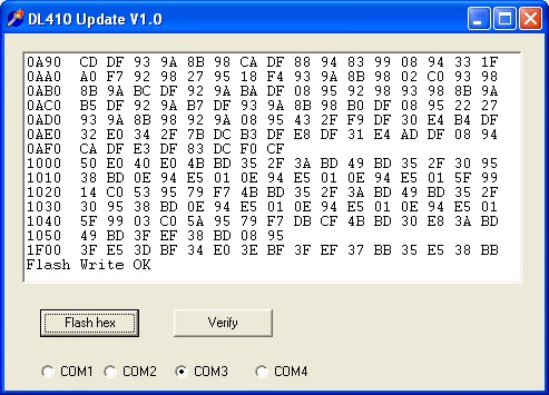 Mit dem Öffnen der der Datei beginnt die Übertragung der neuen Firmware in den Flash-Speicher des DL410.