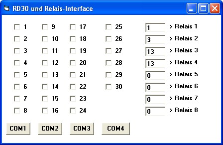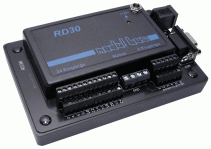 Für Steuerungen aller Art gibt es das Relais-Interface, das bereits seit vielen Jahren in Ausbildung, Industrie und Hobby eingesetzt wird. Bisher fehlte noch ein Interface zum Abfragen von Eingängen. Mit dem RD30 steht nun ein Gerät zur Verfügung, das bis zu 30 Schalter oder Kontakte lesen kann. Es kann mit einem oder mehreren Relais-Interfaces an einer gemeinsamen COM-Schnittstelle betrieben werden.
