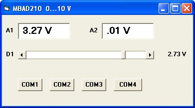 Der Anschluss an den PC verwendet die serielle Schnittstelle, die auch die Stromversorgung für das Gerät übernimmt. Der Anschluss an einen Laptop oder über einen USB/Seriell-Wandler ist ohne Nachteile möglich. Im Vergleich zu den älteren SERAI-Interfaces, bei denen über die Handshakeleitungen der seriellen Schnittstelle AD-Wandler direkt angesteuert wurden, arbeitet im AD210 ein Mikrocontroller ATtiny13 mit internem 10-Bit AD-Wandler. Die Datenübertragung zwischen PC und Interface erfolgt konventionell mit 38400 Baud. Deshalb wird die Arbeitsgeschwindigkeit auch beim Einsatz eines USB/Seriell-Wandlers nicht beeinträchtigt. Der Analogwandler AD210 enthält einen internen 3,3-V-Spannungsregler. Daher arbeitet das Gerät auch mit der reduzierten Spannung von ca. 6 V z.B. an einer seriellen Schnittstelle eines Laptop zuverlässig.Download: VB_AD210.zip (40 kB)